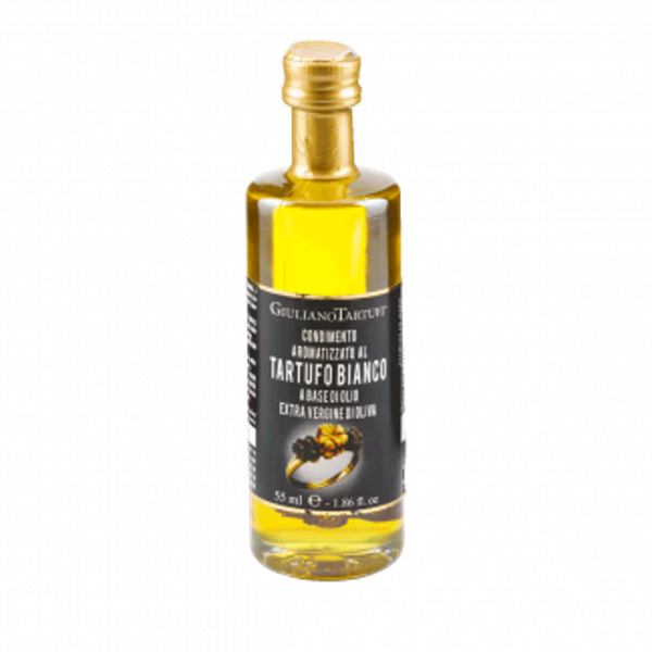 Aukščiausios kokybės pirmojo spaudimo alyvuogių aliejus, džiovintas baltasis triufelis (Tuber Magnatum Pico.) 0,1%, aromatas.